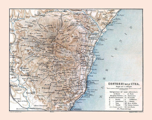 Mount Etna Italy - Baedeker 1880 White Modern Wood Framed Art Print with Double Matting by Baedeker