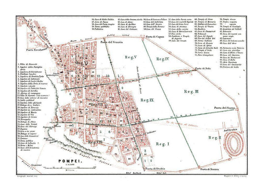 Pompei Italy - Baedeker 1880 White Modern Wood Framed Art Print with Double Matting by Baedeker