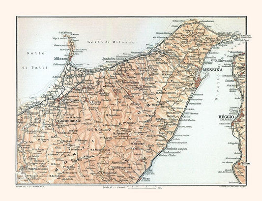 Monti Peloritani Sicily Italy - Baedeker 1880 White Modern Wood Framed Art Print with Double Matting by Baedeker