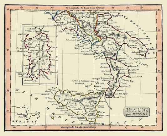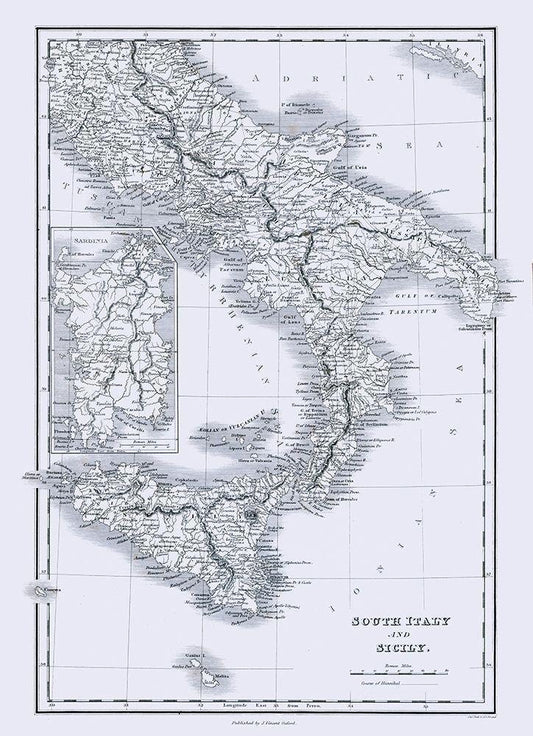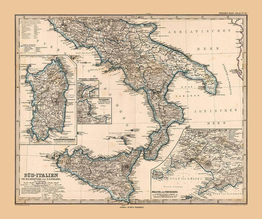 Southern Italy - Stieler 1885 White Modern Wood Framed Art Print with Double Matting by Stieler