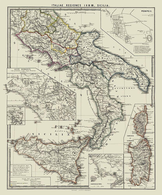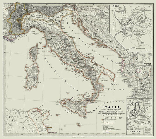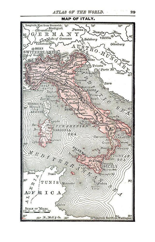 Italy - Droysen 1886 White Modern Wood Framed Art Print with Double Matting by Droysen