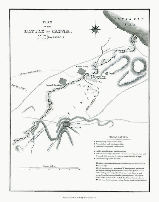 Battle of Cannae - Italy - Oxford 1828 White Modern Wood Framed Art Print with Double Matting by Unknown
