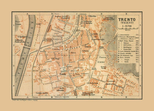 Trento Italy - Baedeker 1910 White Modern Wood Framed Art Print with Double Matting by Baedeker
