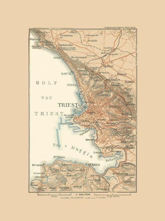 Trieste Region Italy - Baedeker 1910 White Modern Wood Framed Art Print with Double Matting by Baedeker