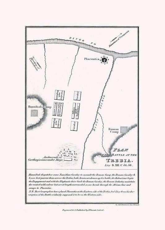 Battle of Trebia - Italy - Oxford 1828 White Modern Wood Framed Art Print with Double Matting by Unknown