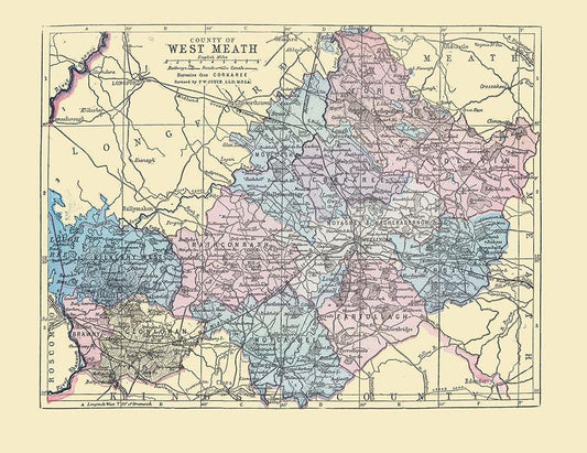 West Meath County Ireland - Bartholomew 1882 White Modern Wood Framed Art Print with Double Matting by Bartholomew