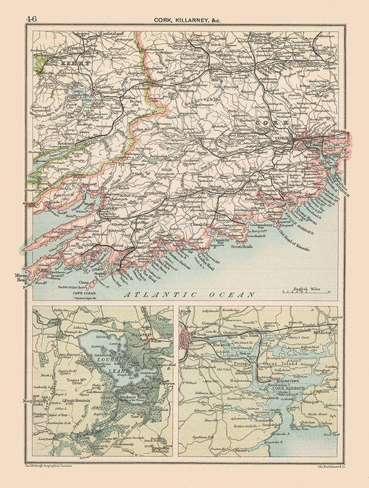 Southern Ireland - Bartholomew 1892 White Modern Wood Framed Art Print with Double Matting by Bartholomew