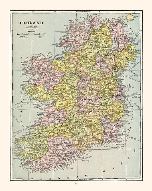 Ireland - Cram 1892 White Modern Wood Framed Art Print with Double Matting by Cram