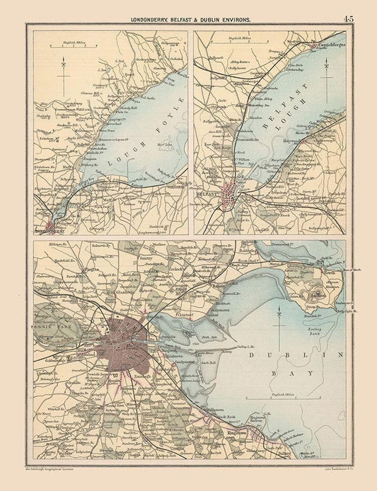 Fermanagh County Ireland - Bartholomew 1882 White Modern Wood Framed Art Print with Double Matting by Bartholomew