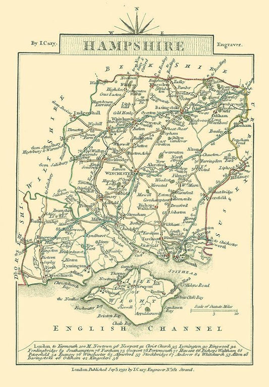 Hampshire County England - Cary 1792 White Modern Wood Framed Art Print with Double Matting by Cary