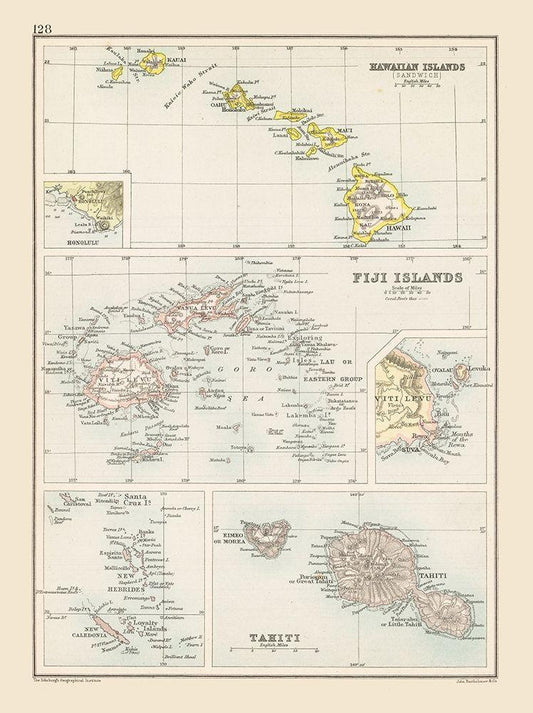 Hawaii Fiji Tahiti - Bartholomew 1892 White Modern Wood Framed Art Print with Double Matting by Bartholomew