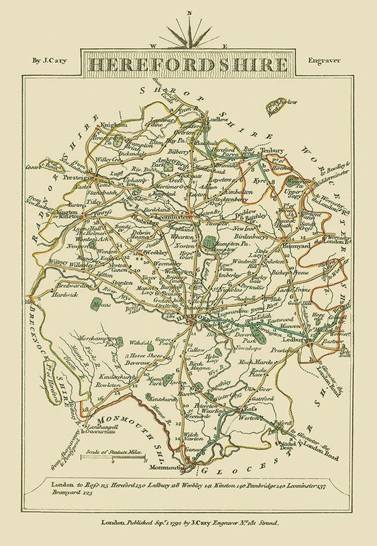 Herefordshire County England - Cary 1792 White Modern Wood Framed Art Print with Double Matting by Cary