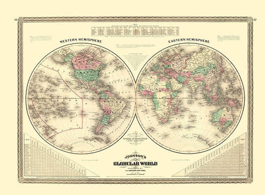 Western Eastern Hemisphere - Johnson 1870 White Modern Wood Framed Art Print with Double Matting by Johnson