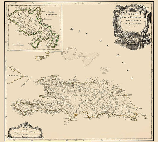 Caribbean Hispaniola Martinique - Boudet 1750 White Modern Wood Framed Art Print with Double Matting by Boudet