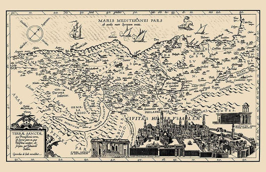 Holy Land with Jerusalem Israel - De Jode 1578 White Modern Wood Framed Art Print with Double Matting by De Jode