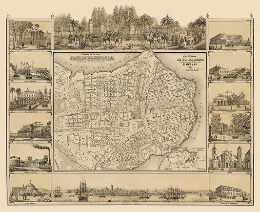 Caribbean Havana Cuba - May 1853 White Modern Wood Framed Art Print with Double Matting by May