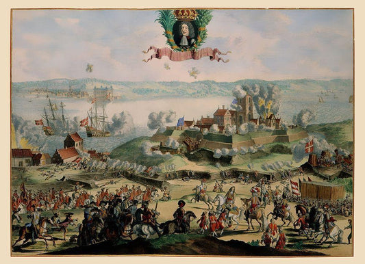 Scandanavia Helsingborg Sweden Siege Panoramic White Modern Wood Framed Art Print with Double Matting by De Hooghe
