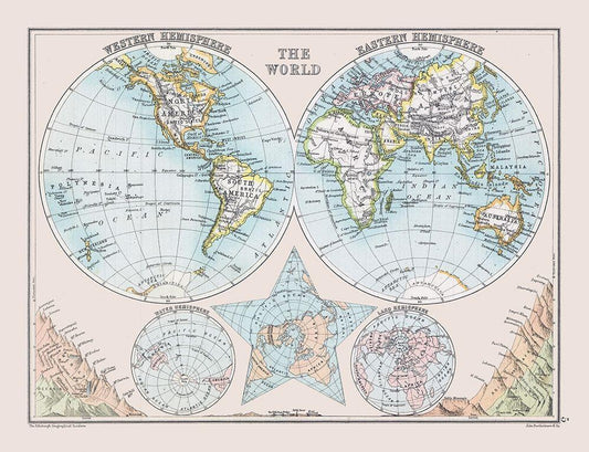 Eastern Western Hemispheheres - Bartholomew 1892 White Modern Wood Framed Art Print with Double Matting by Bartholomew