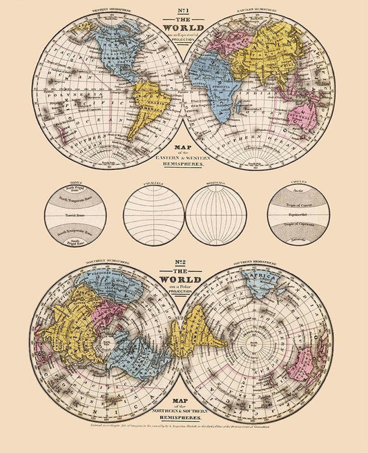 Hemispheres Equatorial Polar Projections - Mit White Modern Wood Framed Art Print with Double Matting by Mitchell