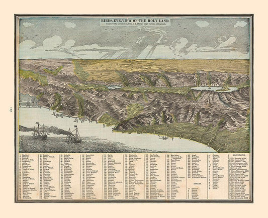 Birds Eye View of The Holy Land - Cram 1888 White Modern Wood Framed Art Print with Double Matting by Cram