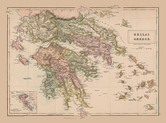 Greece - Black 1867 White Modern Wood Framed Art Print with Double Matting by Black