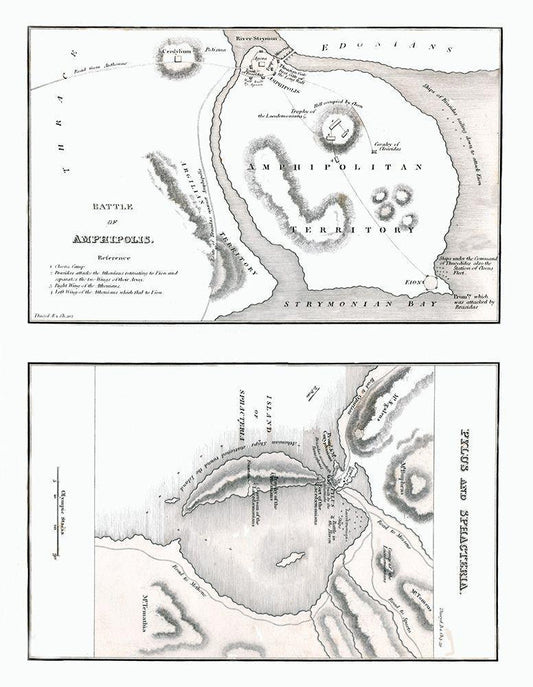 Battle of Amphipolis - Pylus - Sphacteria - Oxford White Modern Wood Framed Art Print with Double Matting by Unknown
