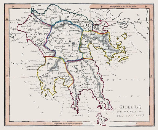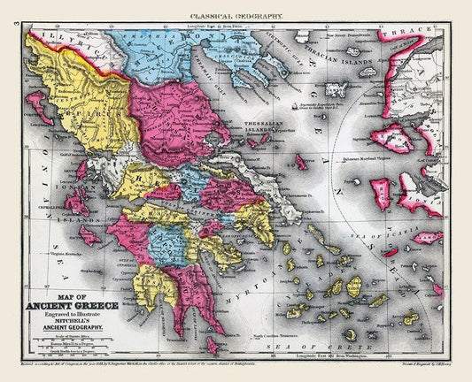 Ancient Greece - Mitchell 1844 White Modern Wood Framed Art Print with Double Matting by Mitchell