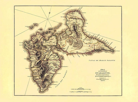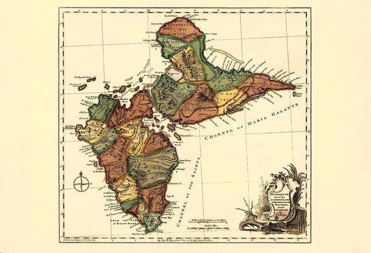 Caribbean Guadeloupe - Jefferys 1775 White Modern Wood Framed Art Print with Double Matting by Jefferys
