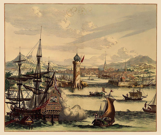 Caribbean Havana Cuba View - Ogilby 1670 White Modern Wood Framed Art Print with Double Matting by Ogilby