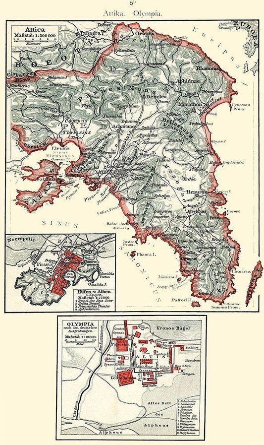 Attica Olympia Greece - Putzgers 1897 White Modern Wood Framed Art Print with Double Matting by Putzgers