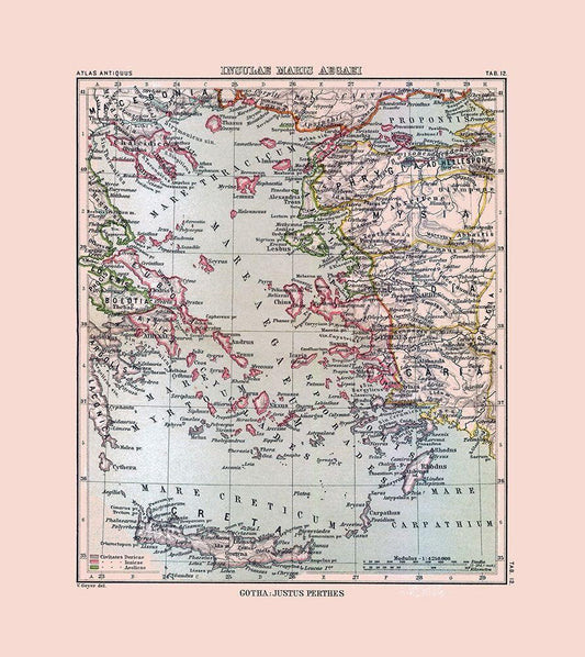 Aegean Sea Islands Greece Turkey - Perthes 1896 White Modern Wood Framed Art Print with Double Matting by Perthes