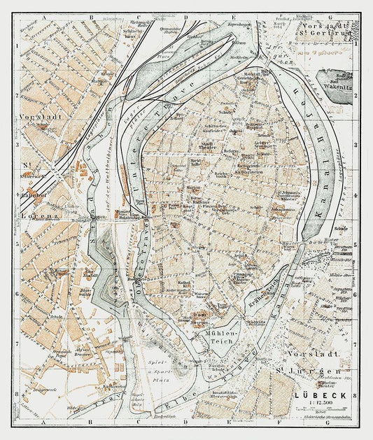 Lubeck Germany - Baedeker 1914 White Modern Wood Framed Art Print with Double Matting by Baedeker