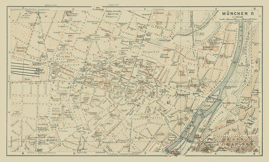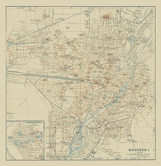 Central Munchen Germany - Baedeker 1914 White Modern Wood Framed Art Print with Double Matting by Baedeker