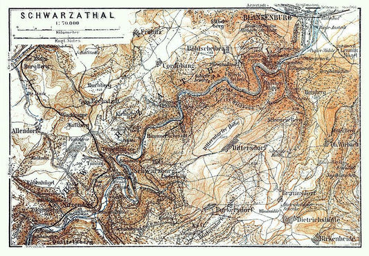 Schwarzatal Region Germany - Baedeker 1914 White Modern Wood Framed Art Print with Double Matting by Baedeker
