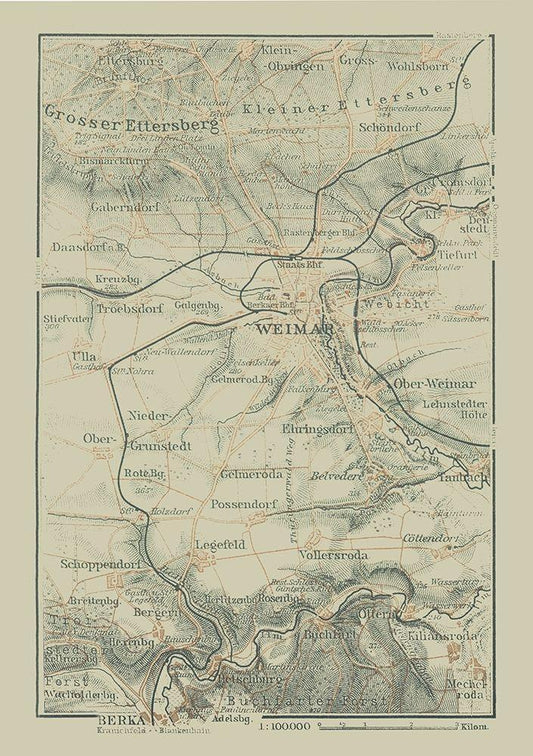 Weimar Surroundings Germany - Baedeker 1914 White Modern Wood Framed Art Print with Double Matting by Baedeker