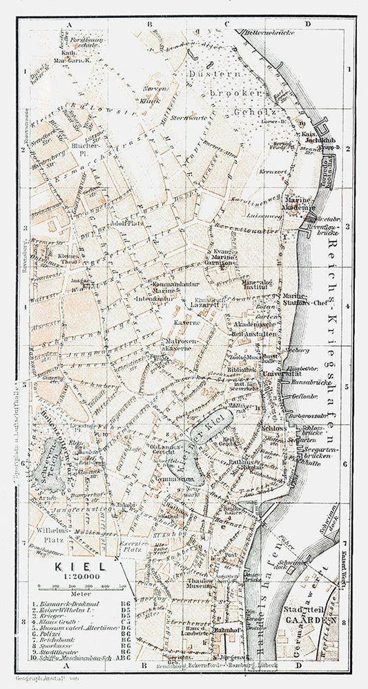Kiel Germany - Baedeker 1914 White Modern Wood Framed Art Print with Double Matting by Baedeker