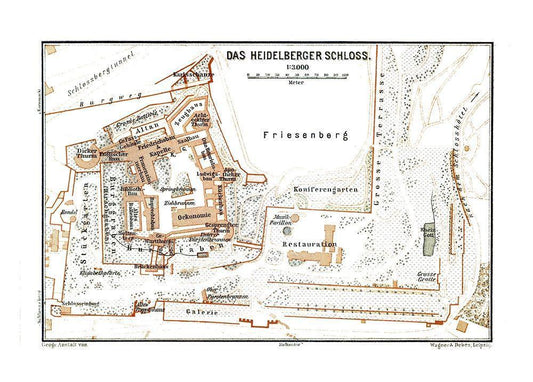 Heidelberg Castle Germany - Baedeker 1896 White Modern Wood Framed Art Print with Double Matting by Baedeker