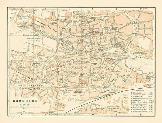 Nuremberg Germany - Baedeker 1896 White Modern Wood Framed Art Print with Double Matting by Baedeker