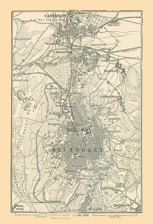 Stuttgart Germany - Baedeker 1896 White Modern Wood Framed Art Print with Double Matting by Baedeker