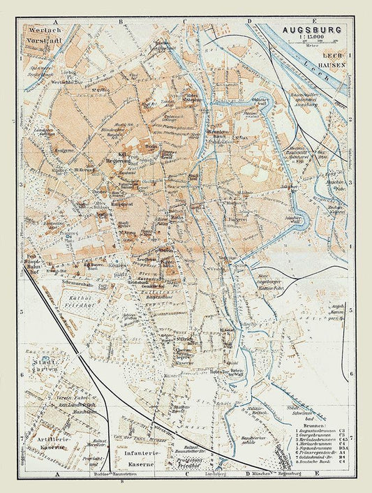 Augsburg Germany - Baedeker 1914 White Modern Wood Framed Art Print with Double Matting by Baedeker