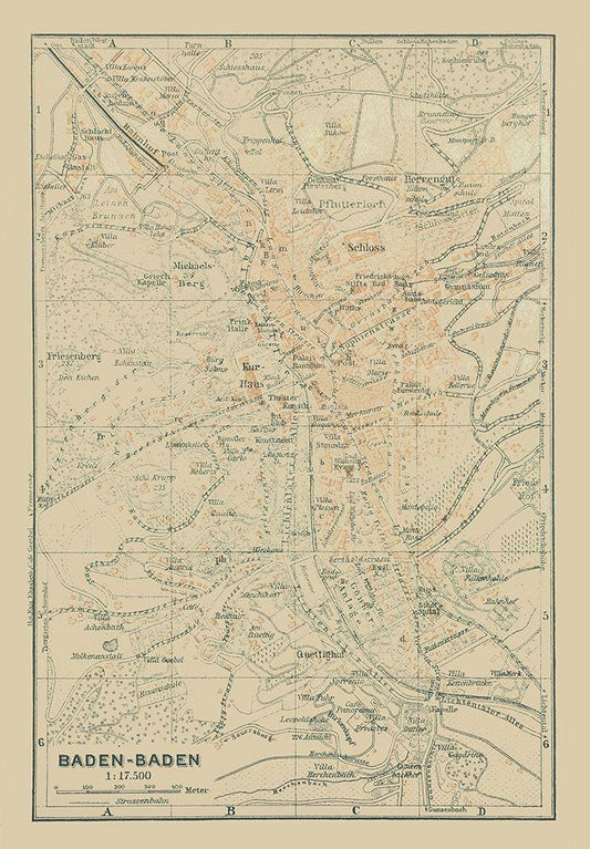 Baden Baden Germany - Baedeker 1914 White Modern Wood Framed Art Print with Double Matting by Baedeker