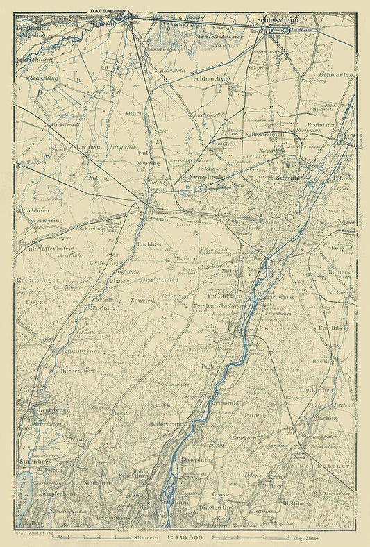 Dachau Region Germany - Baedeker 1914 White Modern Wood Framed Art Print with Double Matting by Baedeker