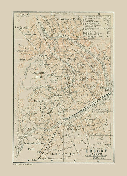 Erfurt Germany - Baedeker 1914 White Modern Wood Framed Art Print with Double Matting by Baedeker