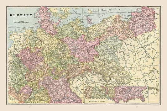 Germany - Cram 1892 White Modern Wood Framed Art Print with Double Matting by Cram