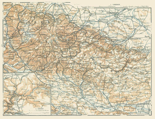 Ober Harz Unter Harz Germany - Baedeker 1914 White Modern Wood Framed Art Print with Double Matting by Baedeker