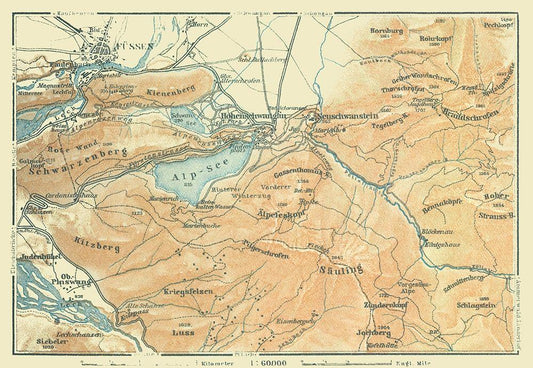 Fussen Region Germany - Baedeker 1914 White Modern Wood Framed Art Print with Double Matting by Baedeker