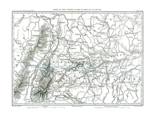 Rhine Danube Rivers Germany France - Thiers 1866 White Modern Wood Framed Art Print with Double Matting by Thiers