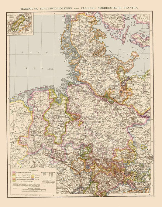 Northern Germany - Velhagen 1881 White Modern Wood Framed Art Print with Double Matting by Velhagen