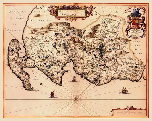 Great Britain Galloway Scotland - Blaeu 1654 White Modern Wood Framed Art Print with Double Matting by Blaeu