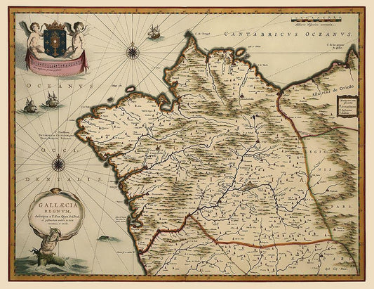 Iberian Peninsula Galicia Spain - Blaeu 1635 White Modern Wood Framed Art Print with Double Matting by Blaeu